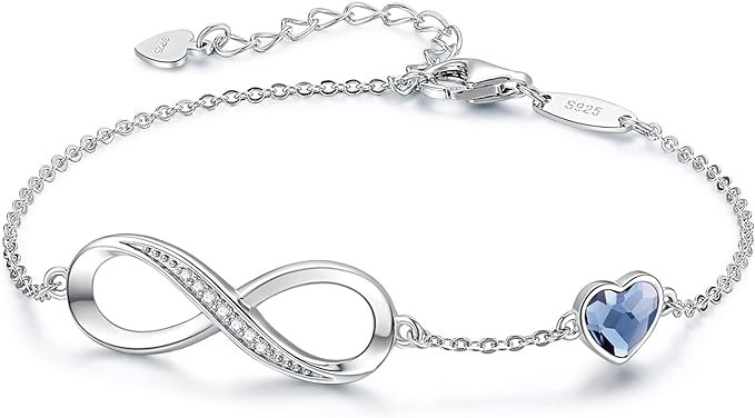 CDE Infinity Heart Symbol Charm Link Bracelet for Women 925 Sterling Silver Stainless Steel Adjustable Anniversary Jewelry Christmas Birthday Gifts for Women Wife Girlfriend Her